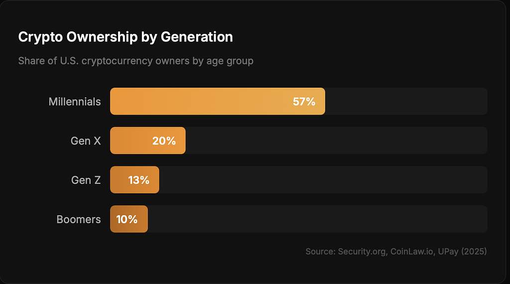 CleanShot 2026-02-11 at 20.35.18@2x.png155 KB The contrast is striking. The generation that holds 51% of America's wealth accounts for just 10% of crypto ownership. The generations building their financial identity around digital assets hold only 23% of the wealth.