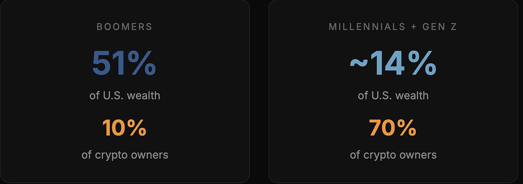 When $124 trillion starts flowing from a generation that trusts banks and real estate to a generation that trusts code and cryptography — something fundamental shifts.